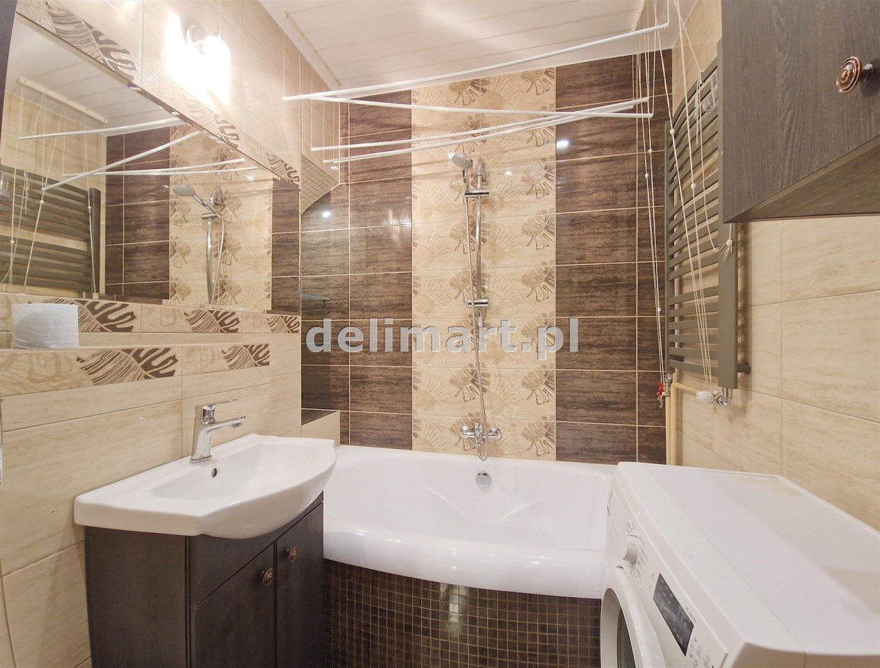 ✅ łazienka z wanną oraz pralką,